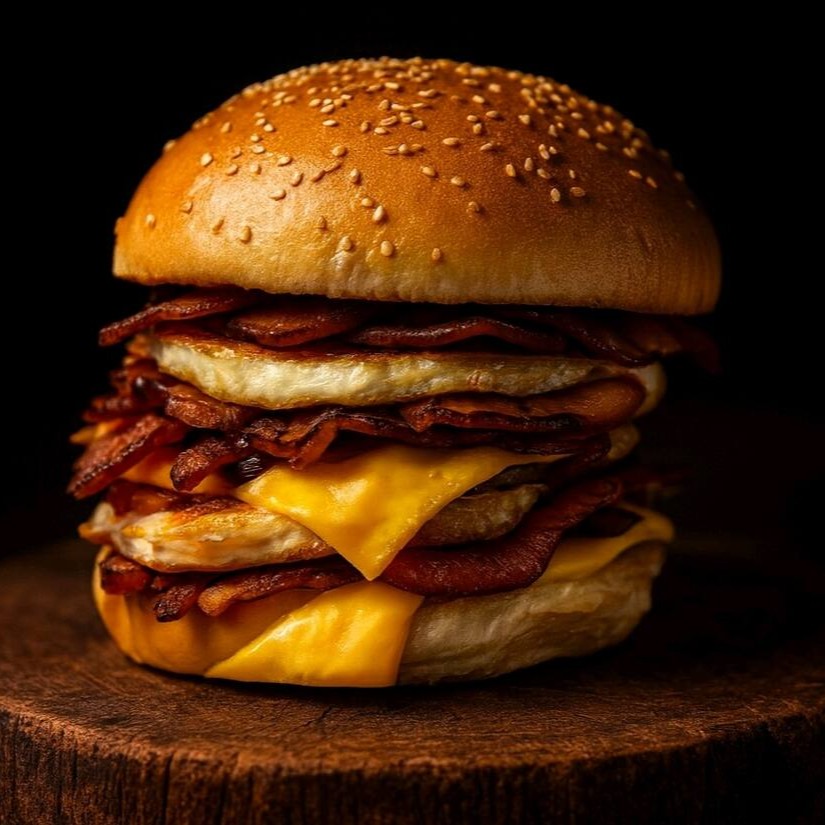 Pão, 3 Carnes, 3 Queijos, 3 Ovos, Cheddar, Bacon,