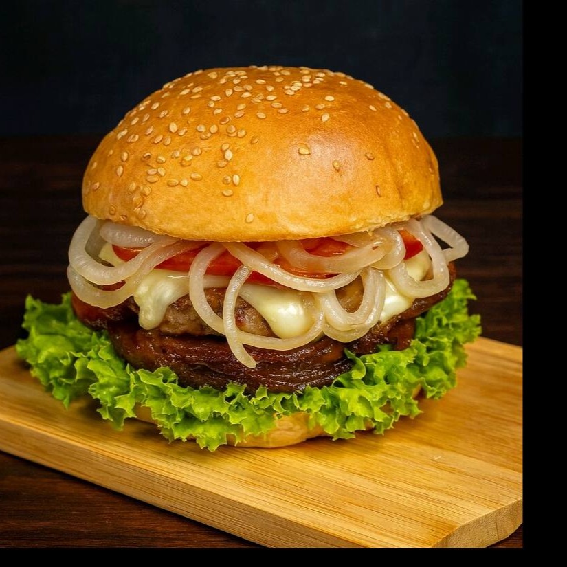 Pão, Carnes, 2 Queijos, Catupiry, Cebola, Bacon,