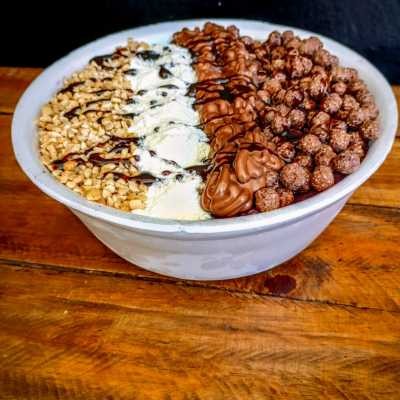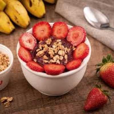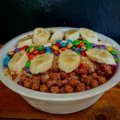 Uma tigela de açai de 1100ml, com até 10 acompanhamentos.